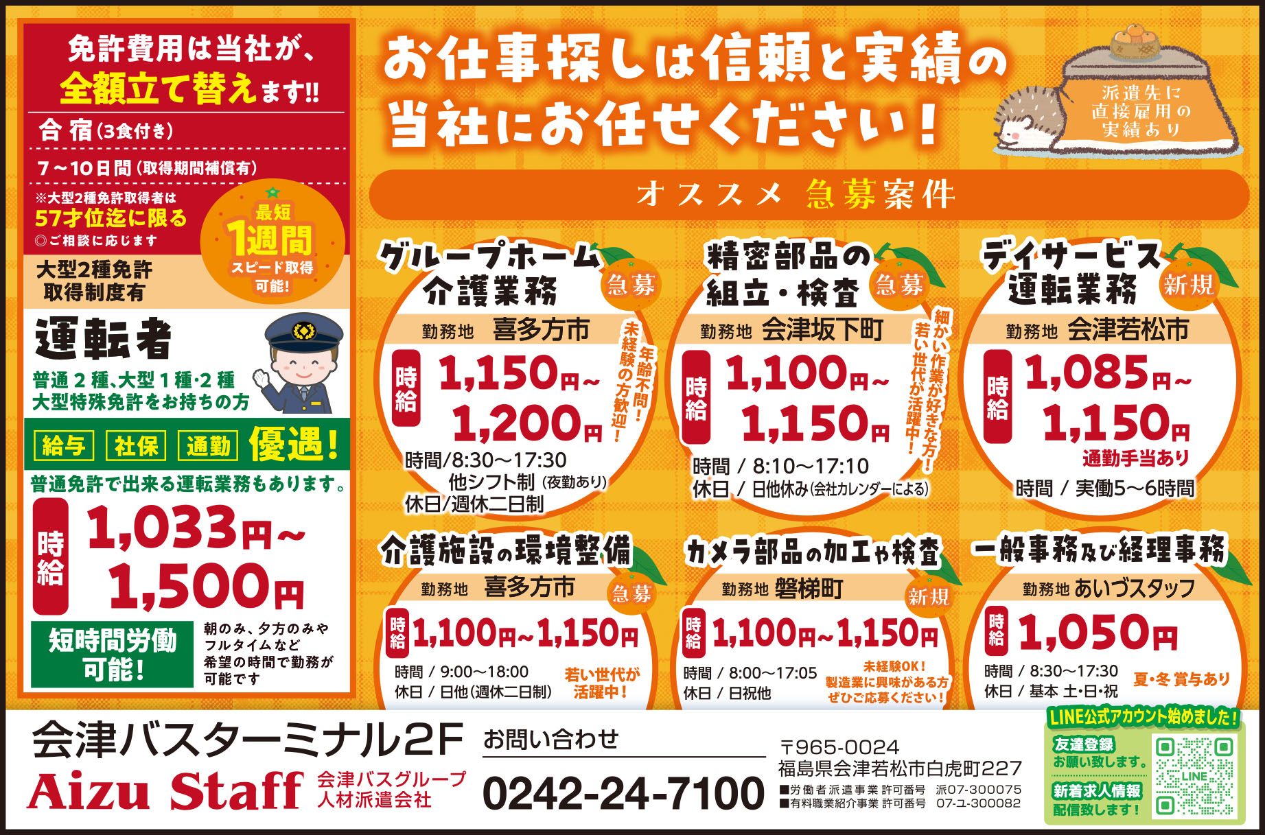 1. 富士の湯/①ABC.時給 1,033円~ D.時給 1,050円~