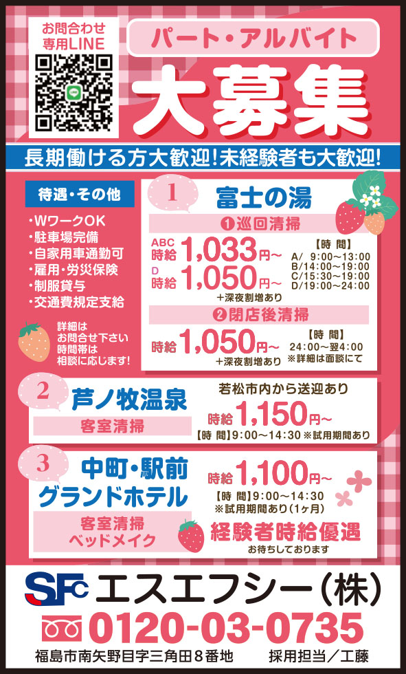 1. 富士の湯/①.巡回清掃 ②.閉店後清掃 ※詳細は面談にて