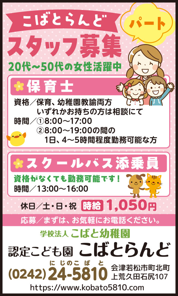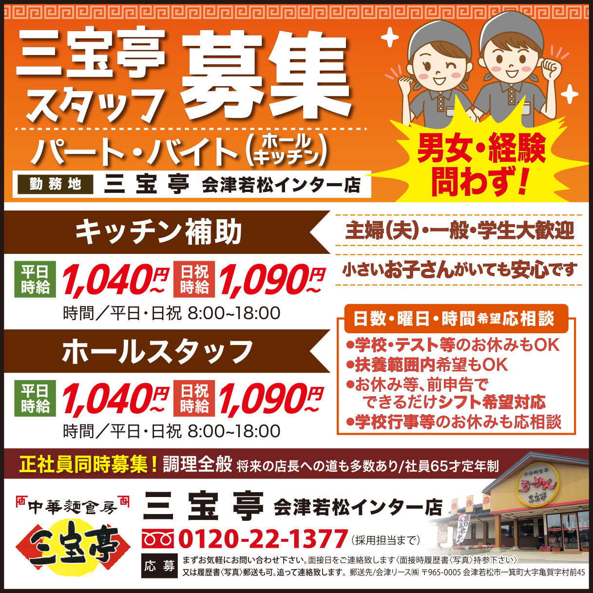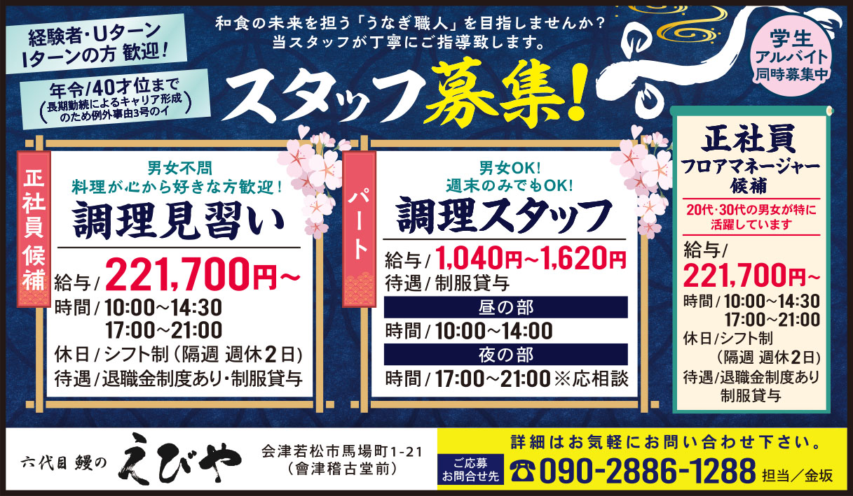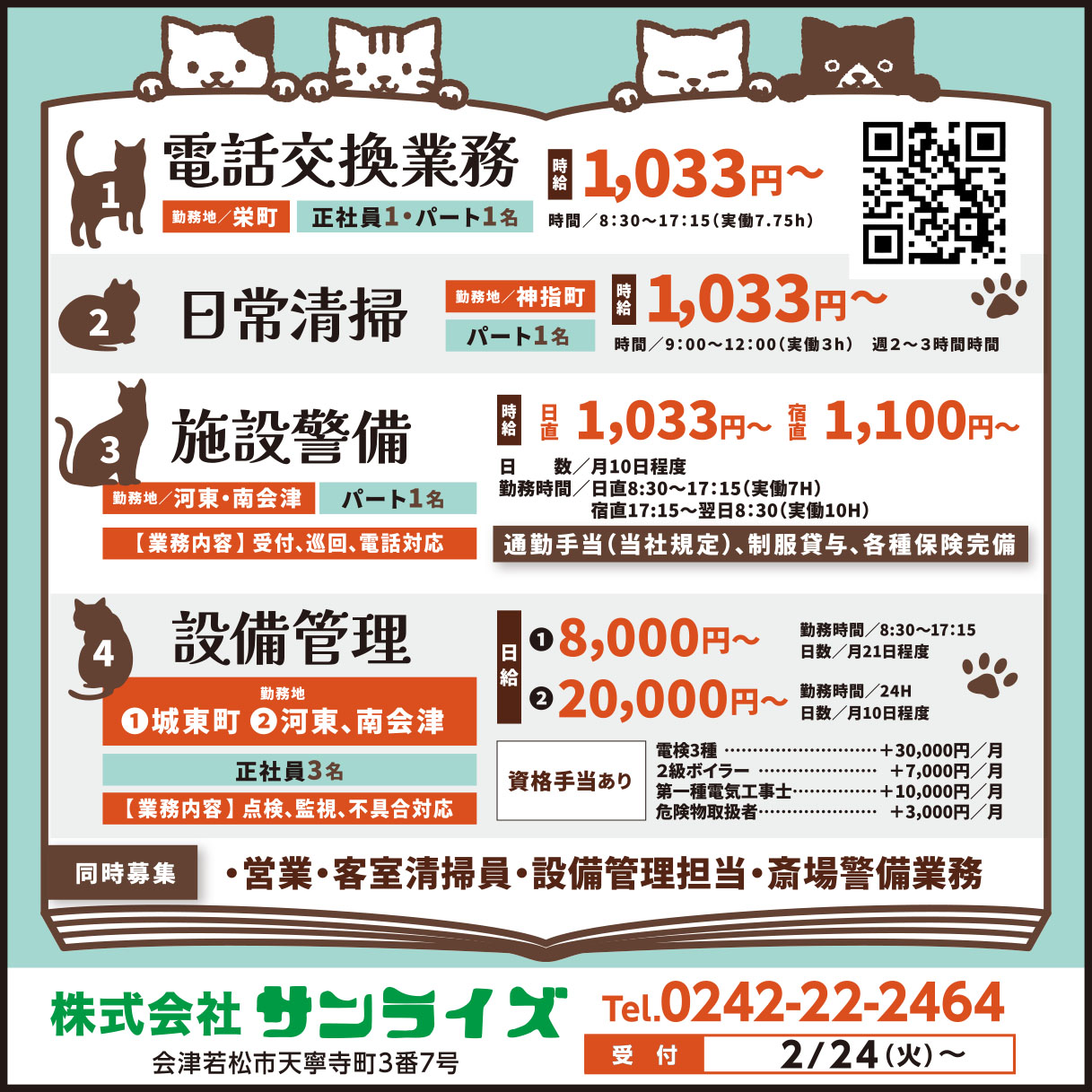 ②ホールスタッフ/平日・日祝 8:00~18:00 |