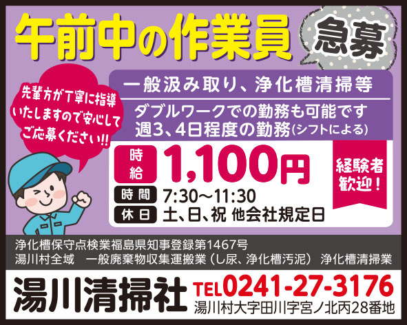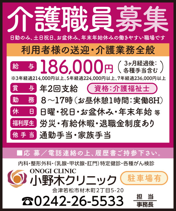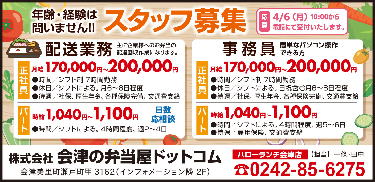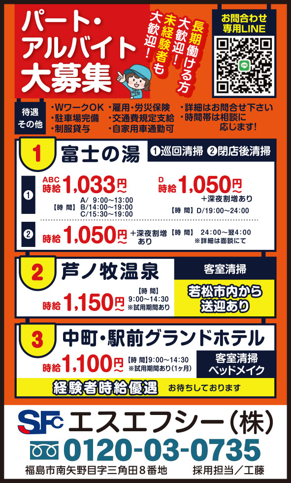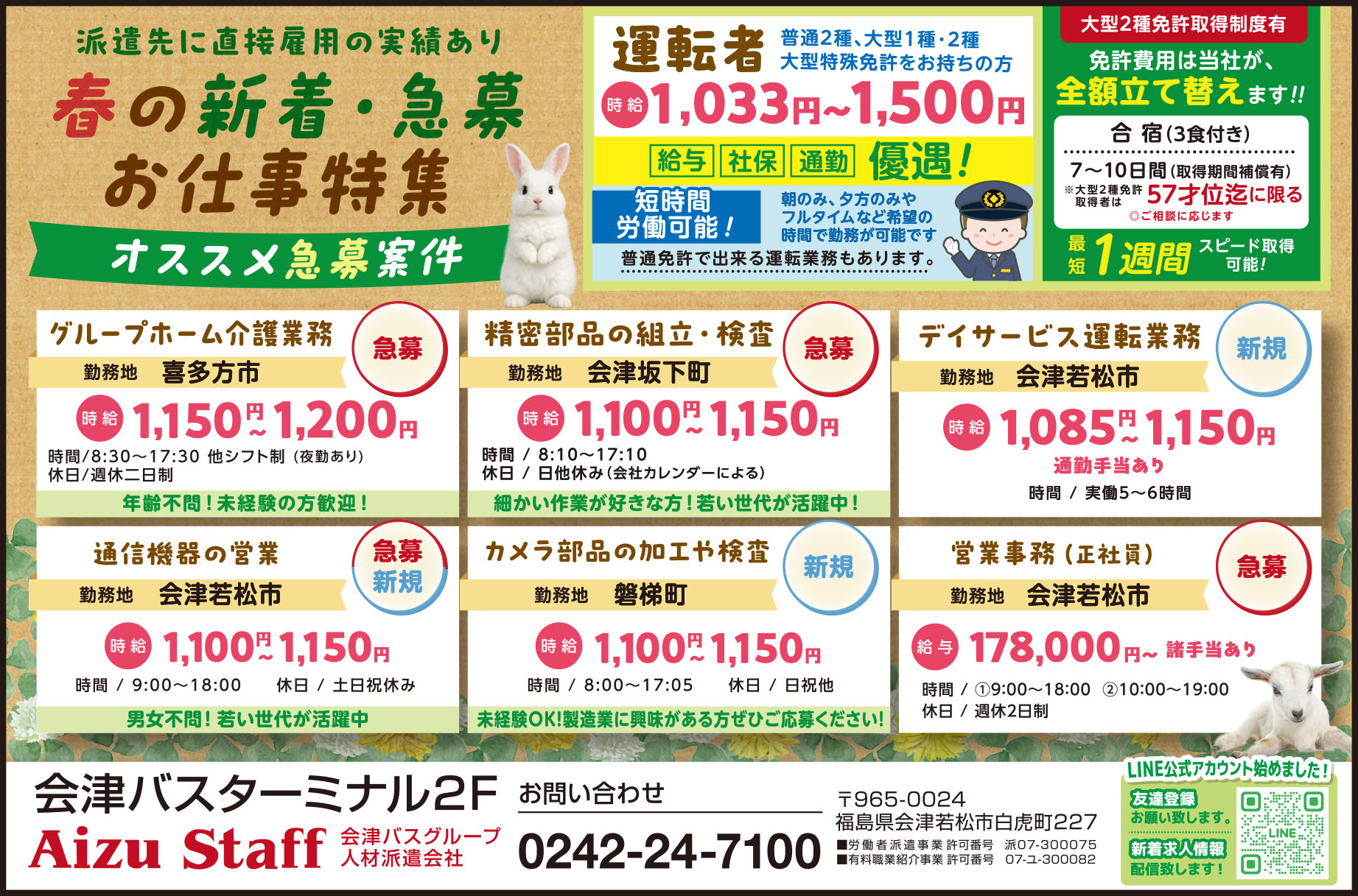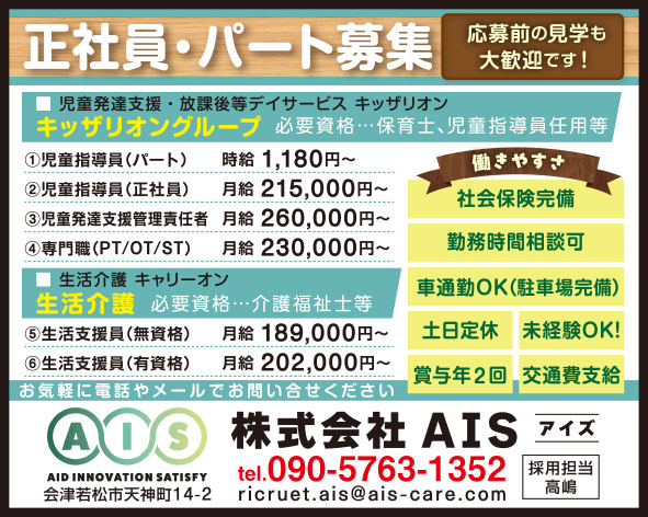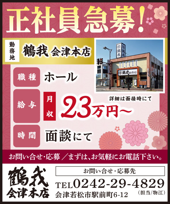 ①会津若松市扇町地内工場/8:00〜16:00(実働7h)・16:00〜24:00・24:00〜翌8:00
