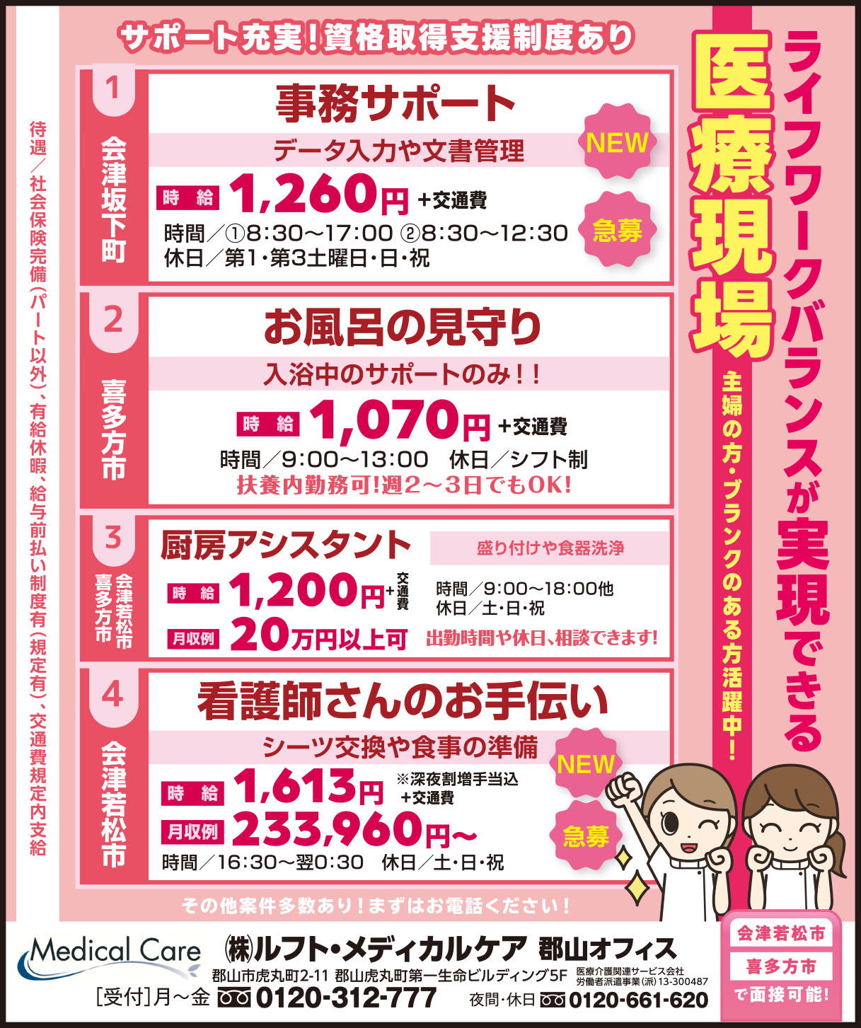 ④看護師さんのお手伝い/時給1,613円 +交通費