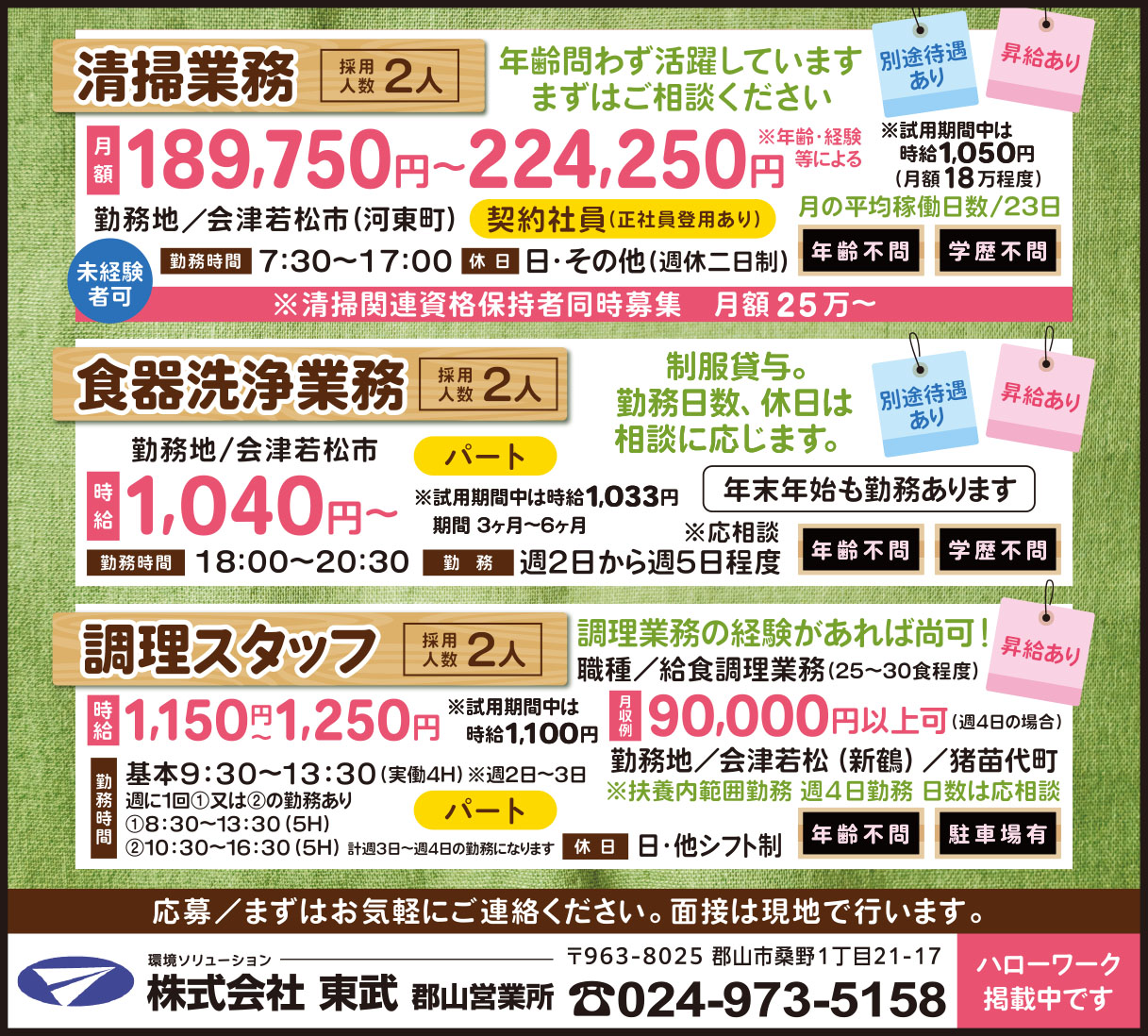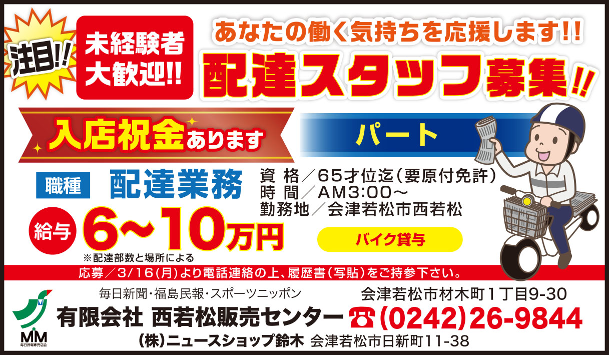 ※学生アルバイトも可 ただし、通勤可能な方。 |