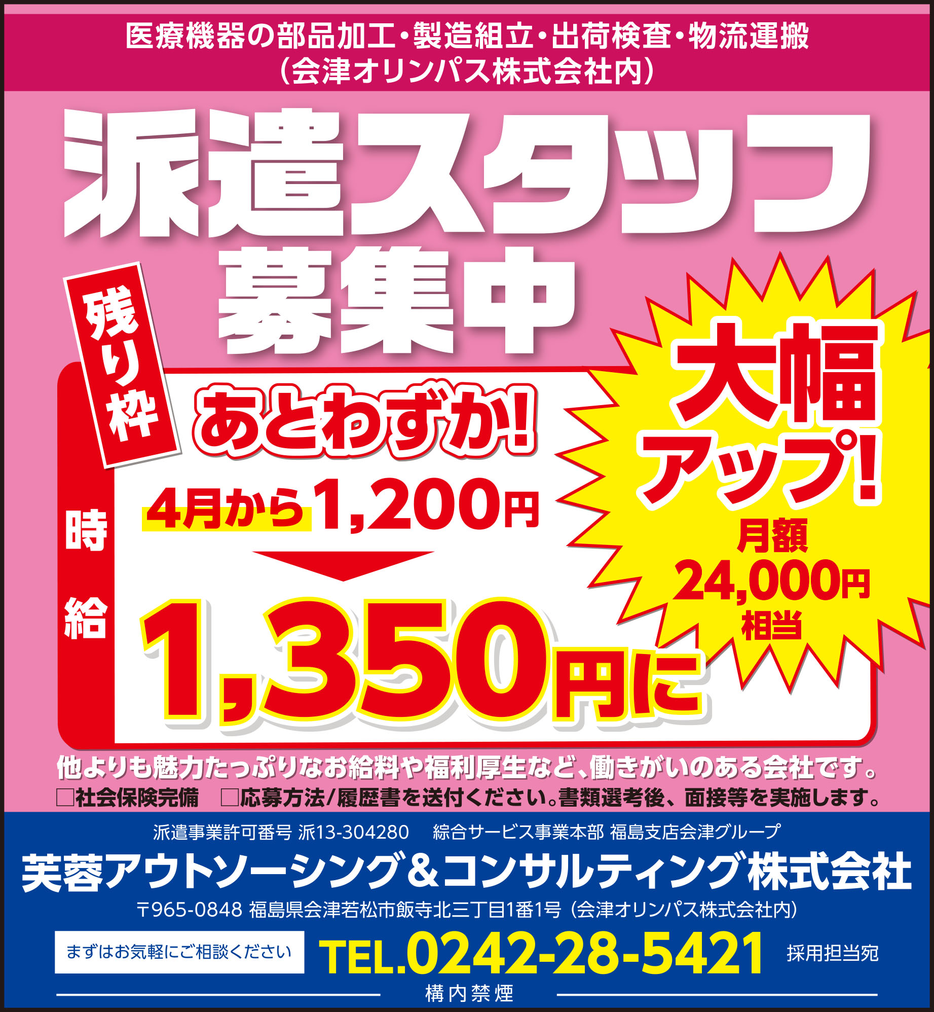 ■時 給/①④⑦ 1,200円~1,300円