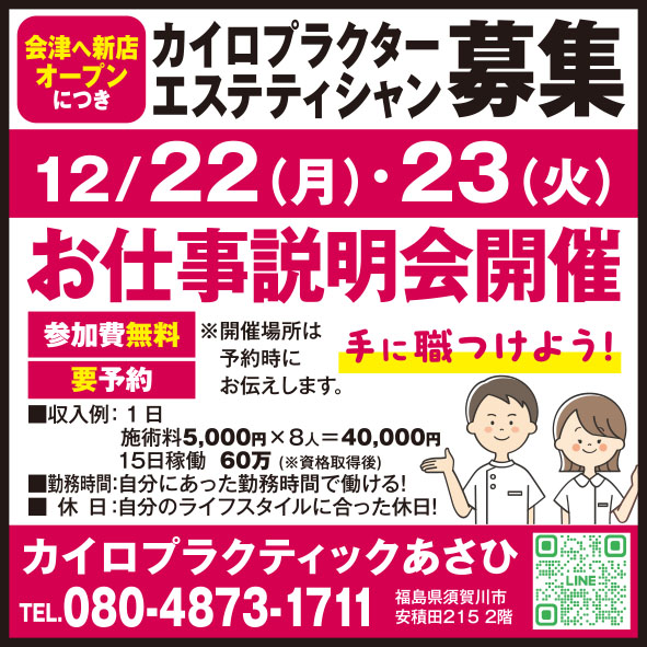 会津白虎町店/⑥フルタイム(経験有無 規定あり 各種保険)180,000円~200,000円