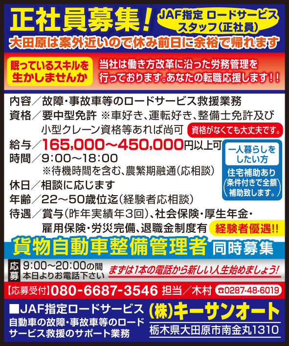 ②ホールスタッフ/平日・日祝 8:00~18:00 |