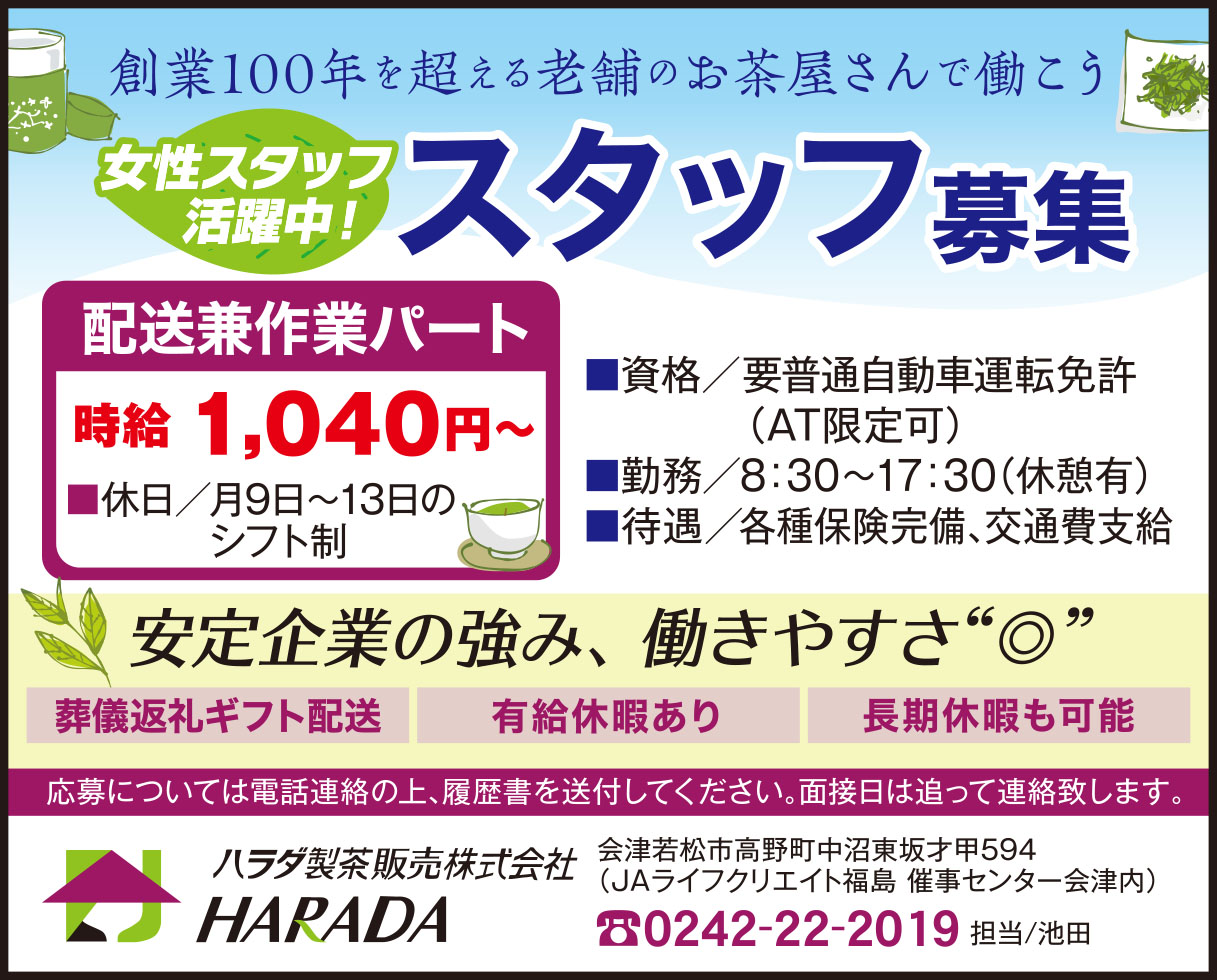 待 遇 | 各種保険完備、交通費支給 有給休暇あり 長期休暇も可能 |