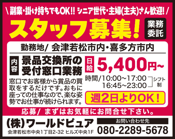 勤務時間 | 時間/10:00~17:00、16:45~23:00▶シフト制 週2日よりOK! |