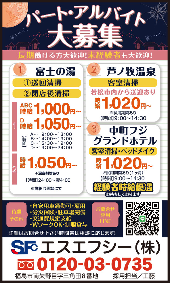 01. 富士の湯/①.巡回清掃 ②.閉店後清掃 ※詳細は面談にて