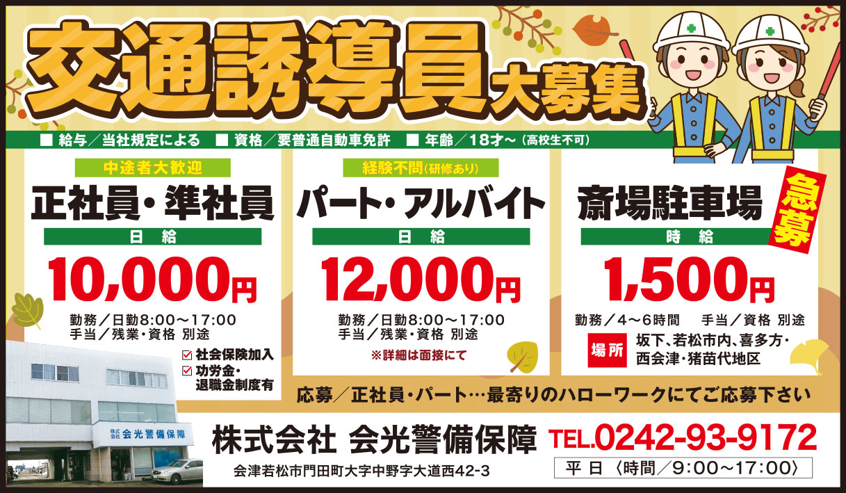 給 与 | 1.正社員・準社員/日給10,000円〜 2.パート・アルバイト(週2日程)/日給12,000円〜 3.斎場駐車場/時給1,500円〜 ※当社規定による |