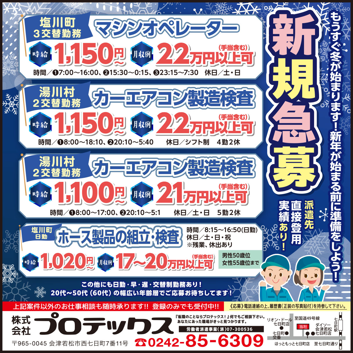 | 勤務エリア | 会津若松市 塩川町 湯川村 下郷町 |