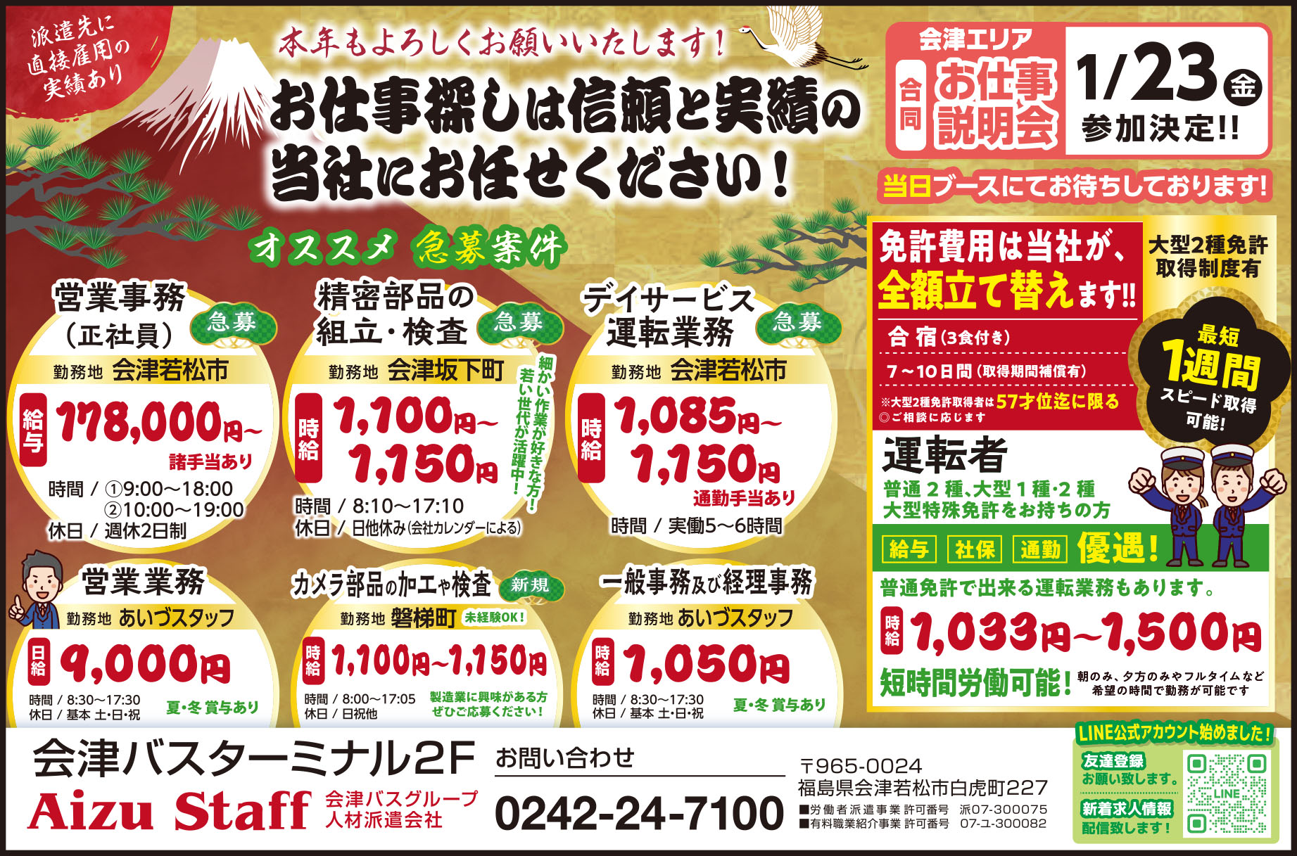 会津エリアお仕事説明会 1/23(金)参加決定!! |