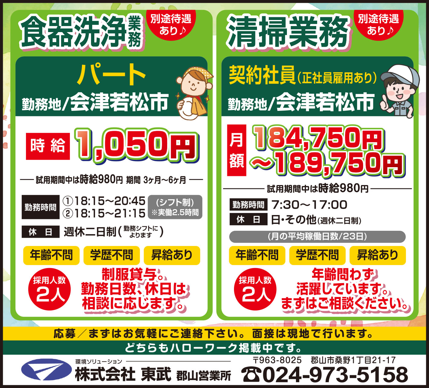 | 勤務地 | 会津若松市 大戸町/芦ノ牧 河東町 |