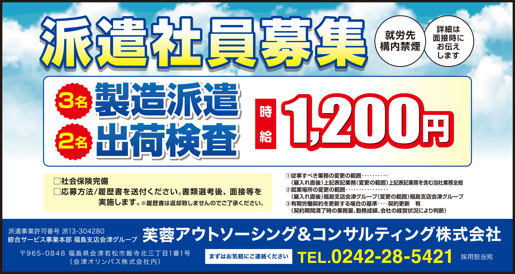 | 勤務地 | 会津若松市 喜多方市 猪苗代町 |