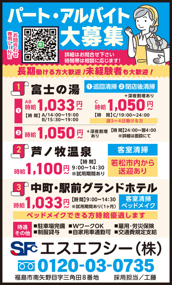 1. 富士の湯/①AB.時給 1,033円~ C.時給 1,050円~+深夜割増あり