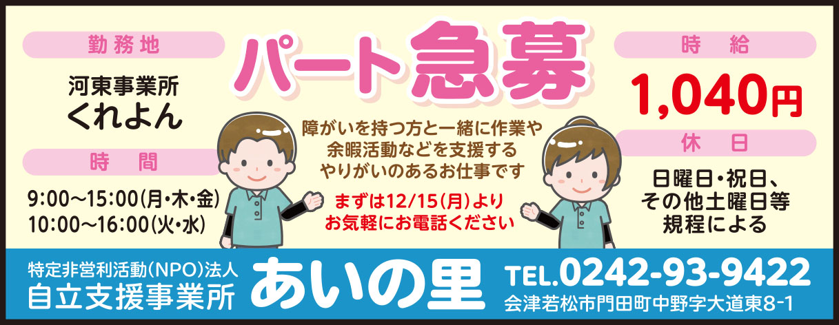 勤務地 会津若松市  大戸町/芦ノ牧  河東町
