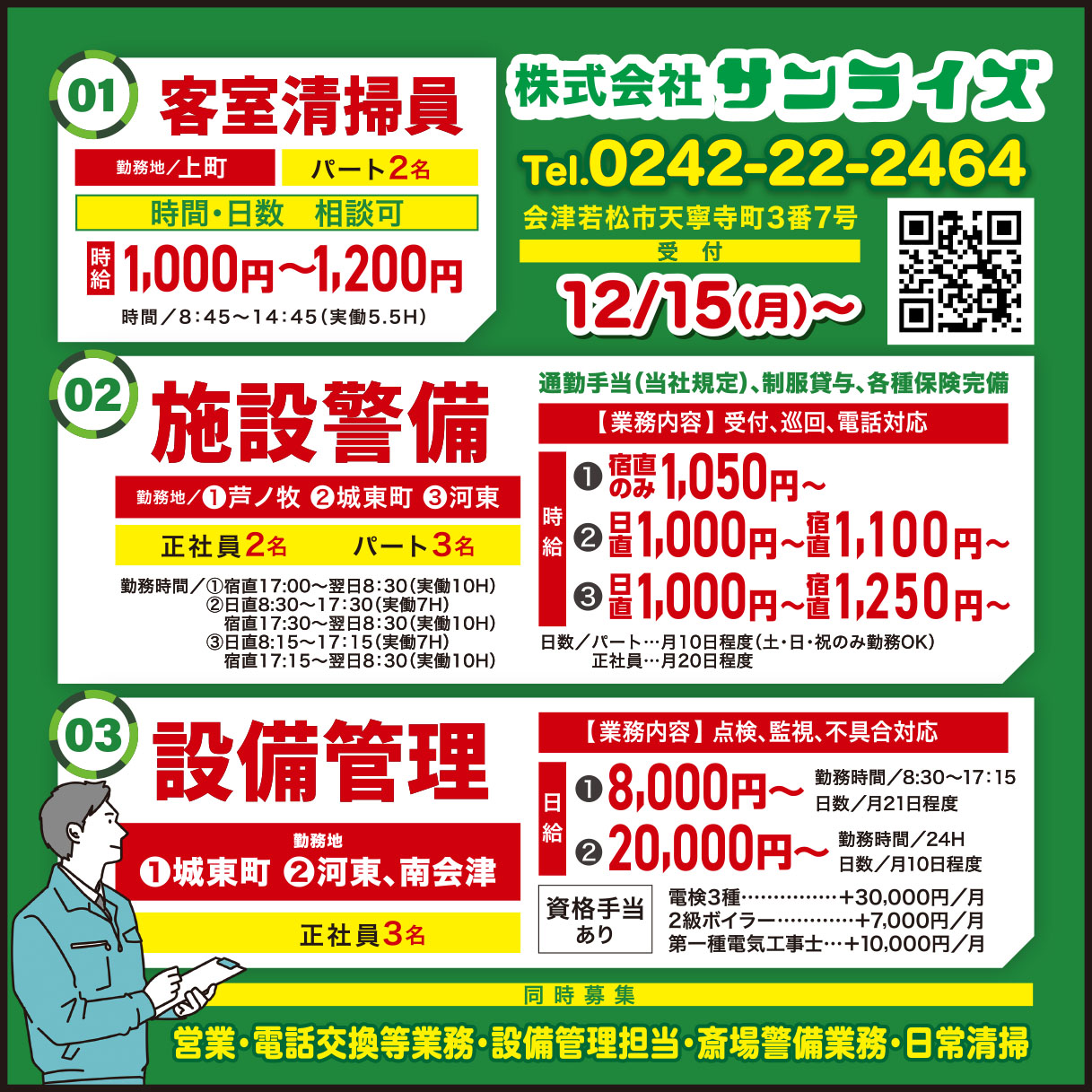 ③設備管理|①日給8,000円〜 ②日給20,000円〜