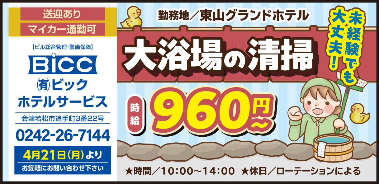 1. 富士の湯/①.巡回清掃 ②.閉店後清掃 ※詳細は面談にて