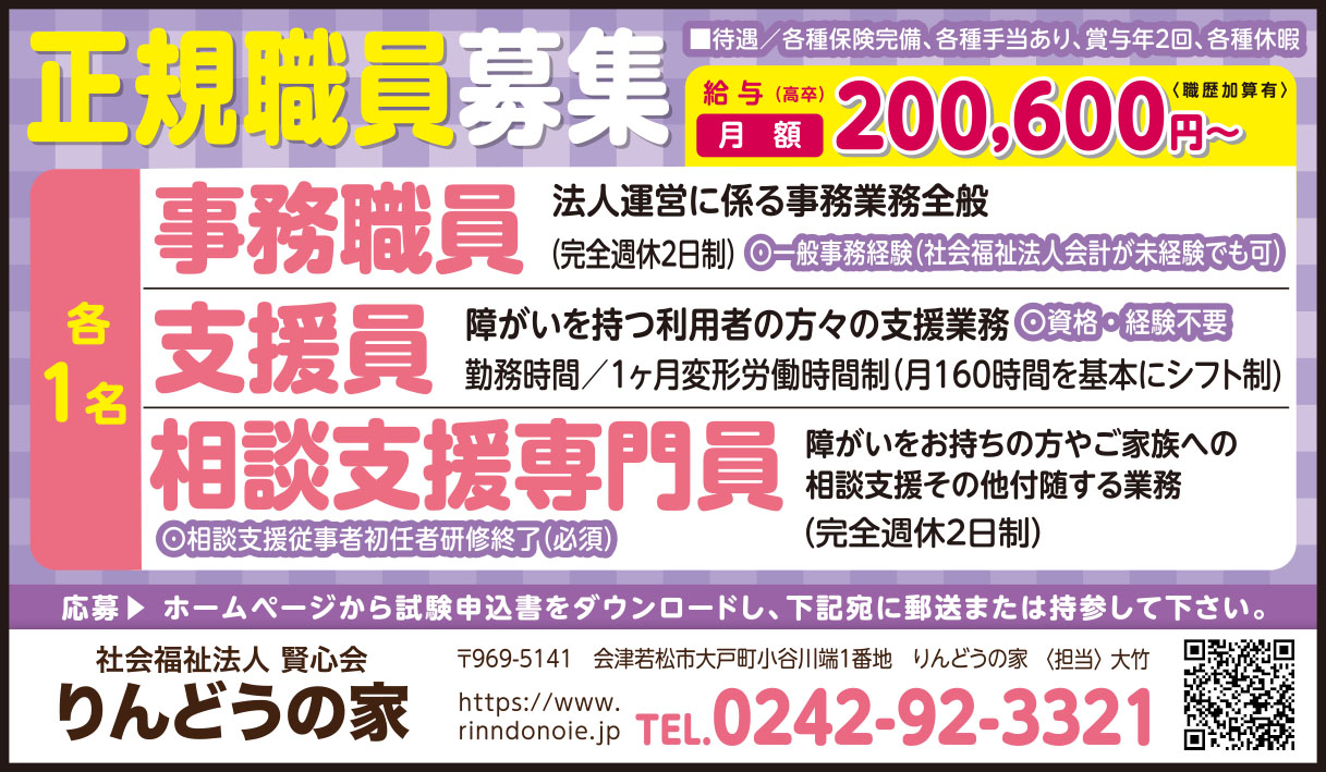 | 勤務地 | 会津若松市 会津美里町 猪苗代町 |