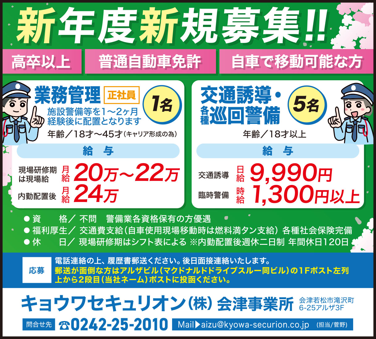 | 勤務地 | 会津若松市 喜多方市 猪苗代町 |