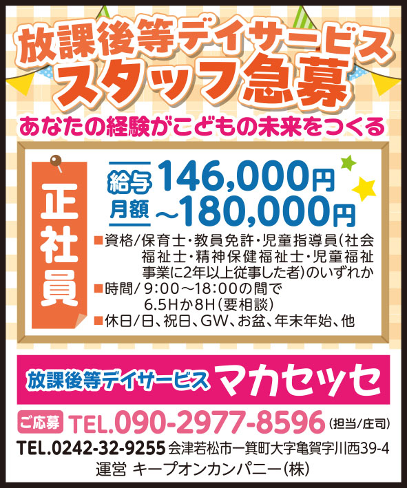 【勤務地】神指町/9:00~12:00(実働3h)