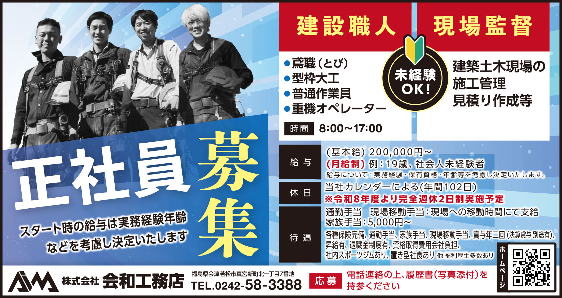 | 給与 | 現場監督/月額200,000円~ 建設職人/月額200,000円~ |