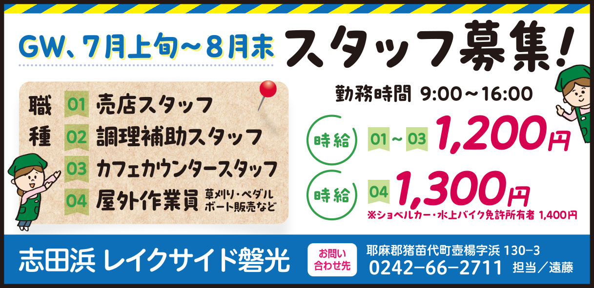 ①売店スタッフ②調理補助スタッフ③カフェカウンタースタッフ/時給1,200円
