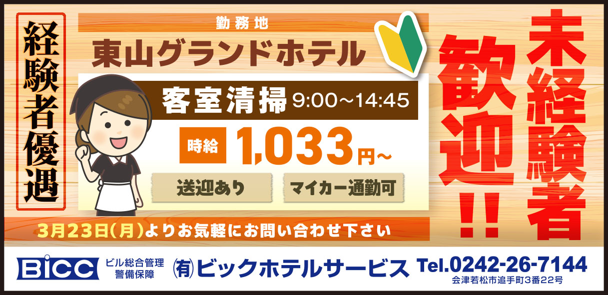 客室清掃/時給 1,033円~ |