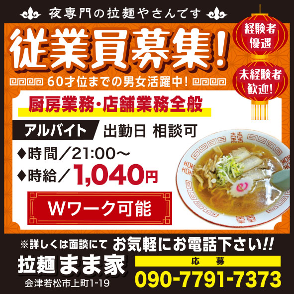 ①夕方働ける方(16:00~20:00)歓迎致します!