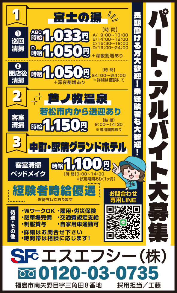 1. 富士の湯/①ABC.時給 1,033円~ D.時給 1,050円~+深夜割増あり