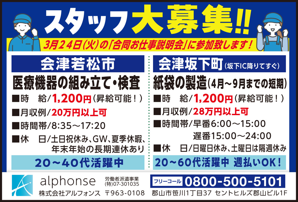 紙袋の製造(4月~9月までの短期)/勤務地:会津坂下町(坂下IC降りてすぐ)