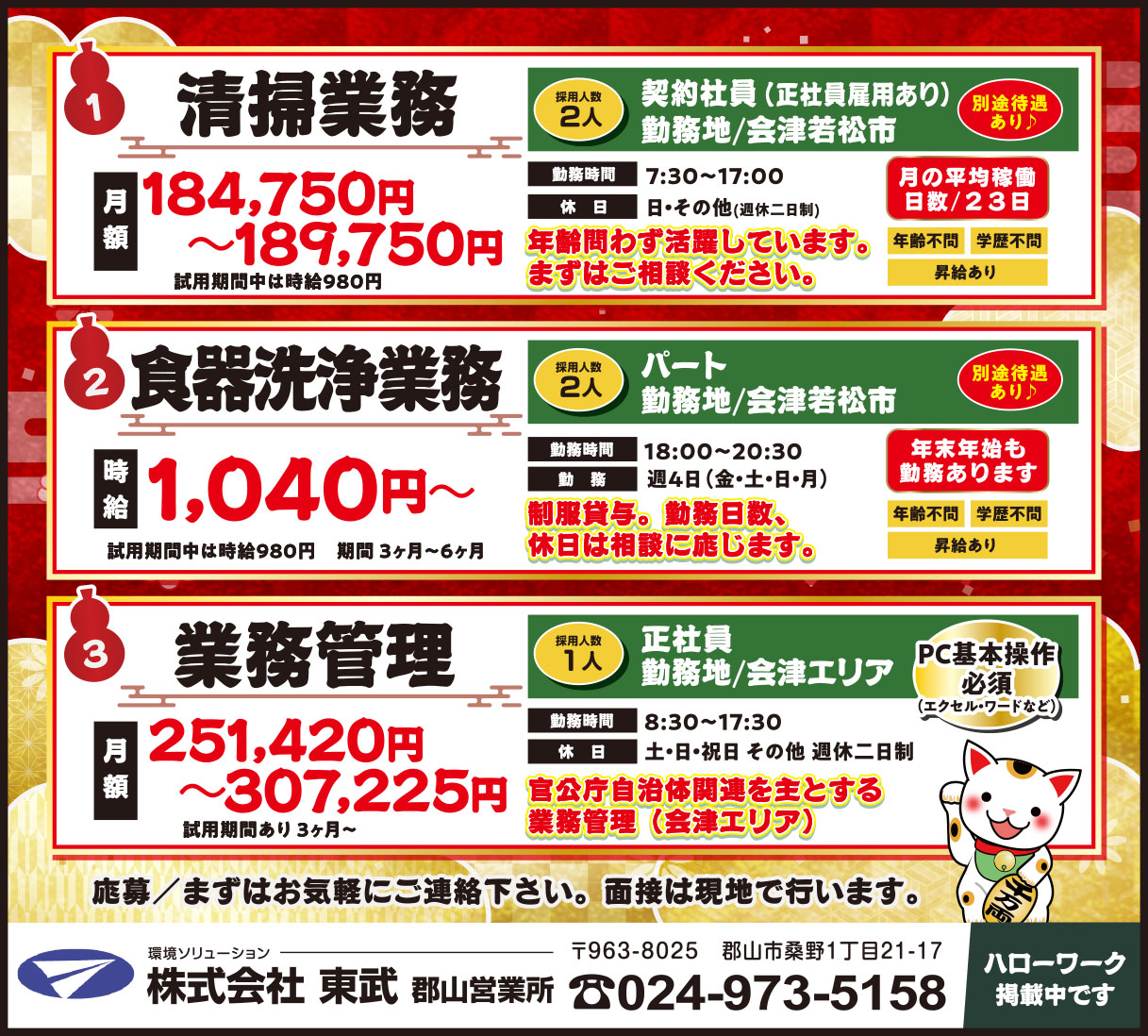 試用期間中は時給980円 期間 3ヶ月~6ヶ月