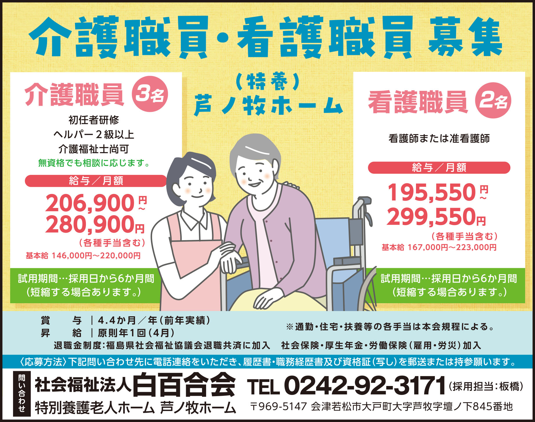 ①介護職員/給与月額206,900円~280,900円(各種手当含む)