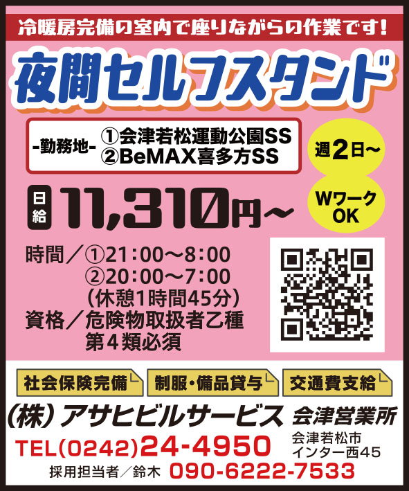 1. 富士の湯/①.巡回清掃 ②.閉店後清掃 ※詳細は面談にて