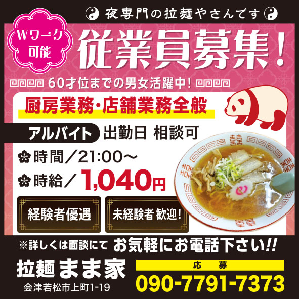 ①夕方働ける方(16:00~20:00)歓迎致します!