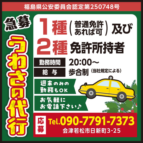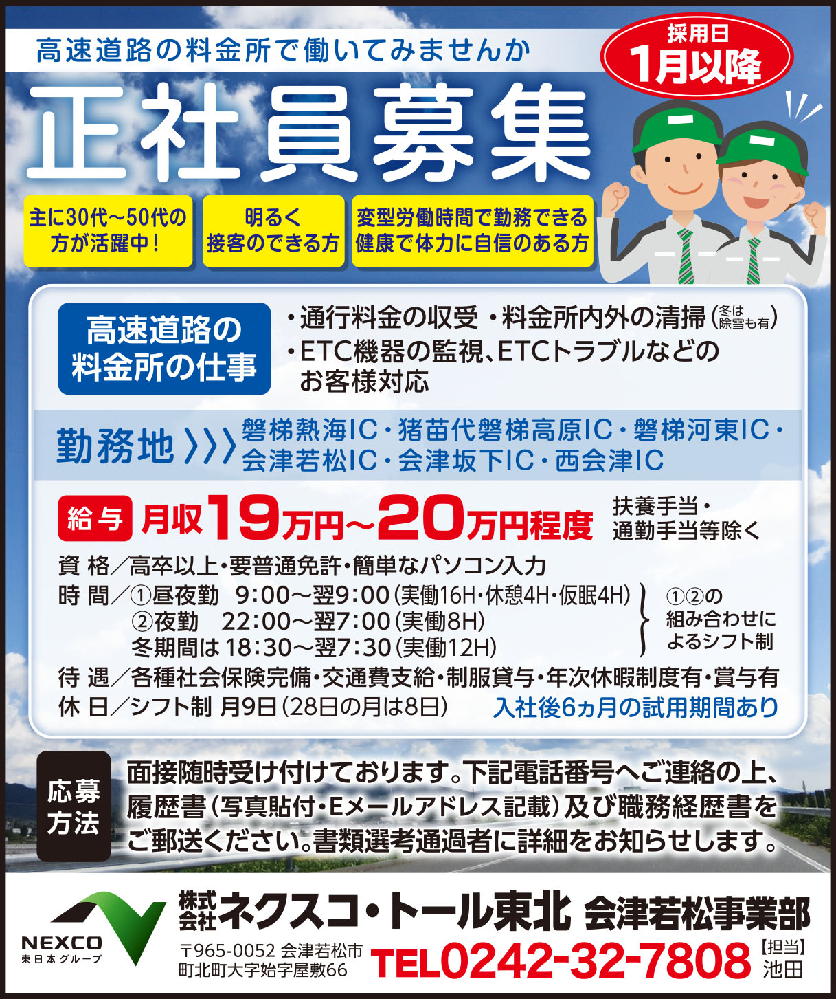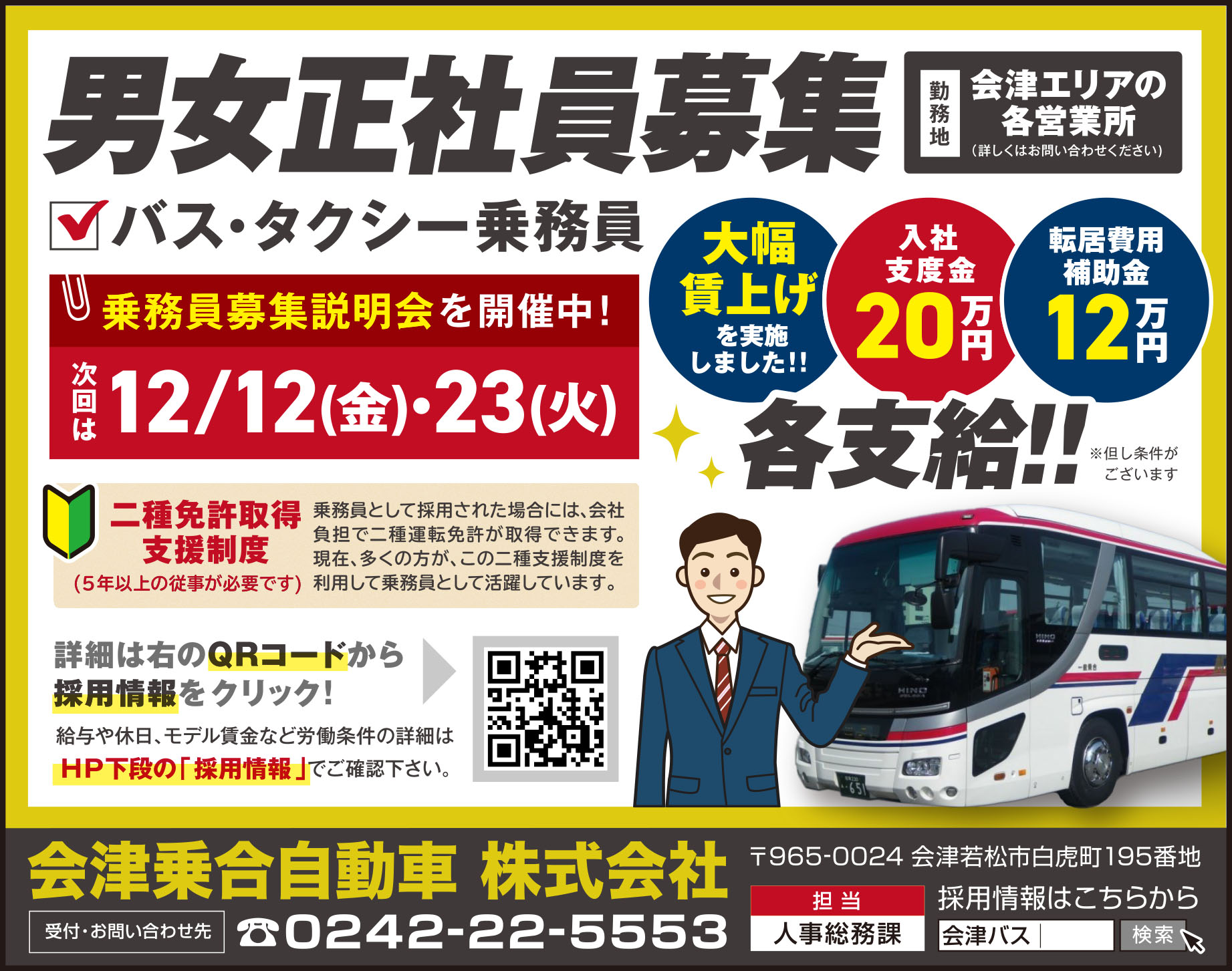 | 勤務地 | 会津若松市 大戸町/芦ノ牧 南会津町 |
