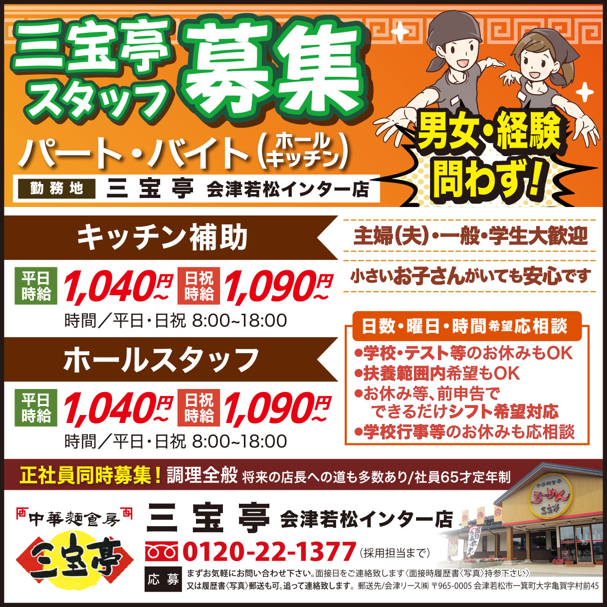 | 仕事内容 | 勤務地/会津白虎町店、会津坂下古町店 |