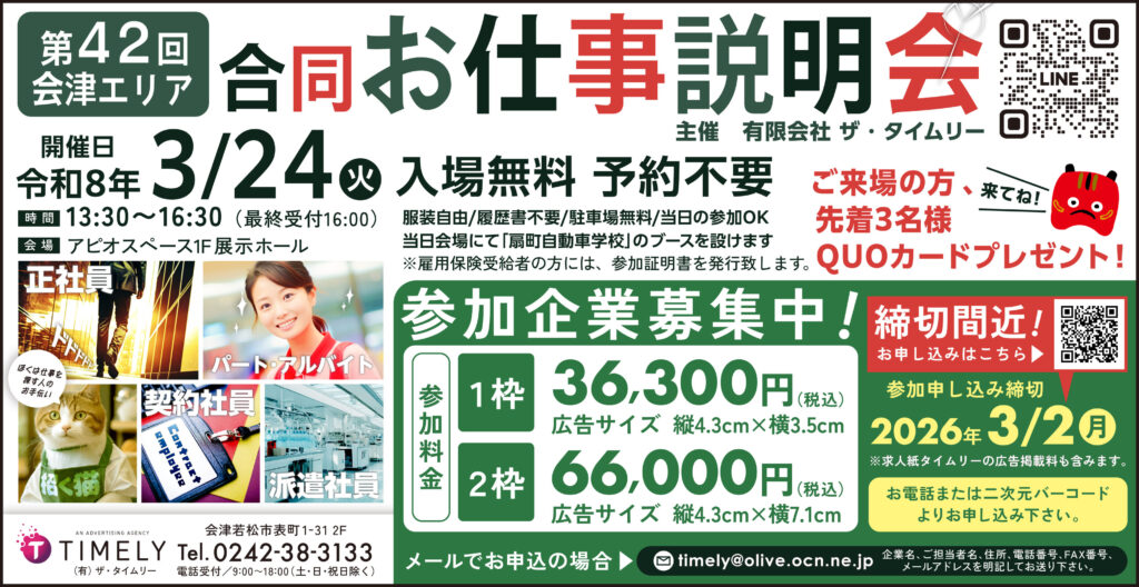 ①夕方働ける方(16:00~20:00)歓迎致します!
