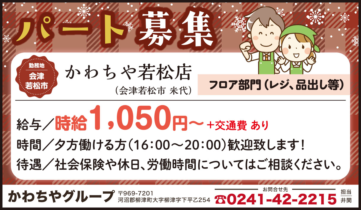かわちや若松店(会津若松市 米代) フロア部門(レジ、品出し等) |