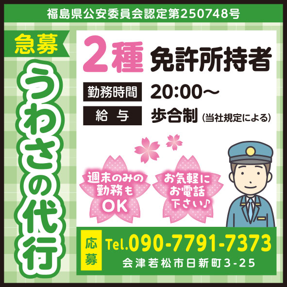 | 勤務地 | 会津若松市 大戸町/芦ノ牧 南会津町 |