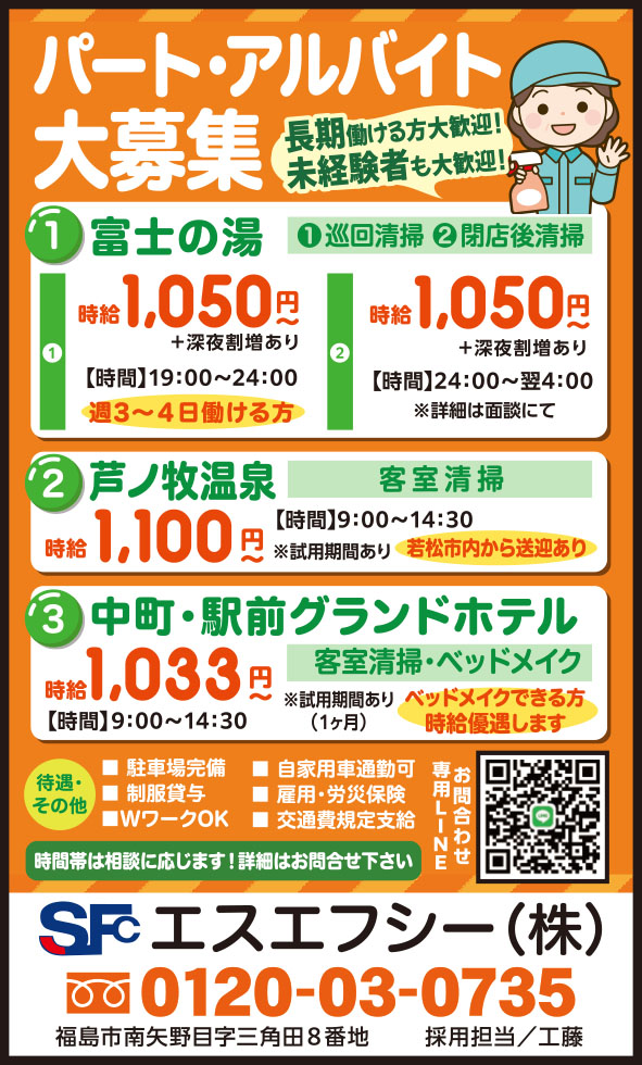 1. 富士の湯/①時給 1,050円~+深夜割増あり
