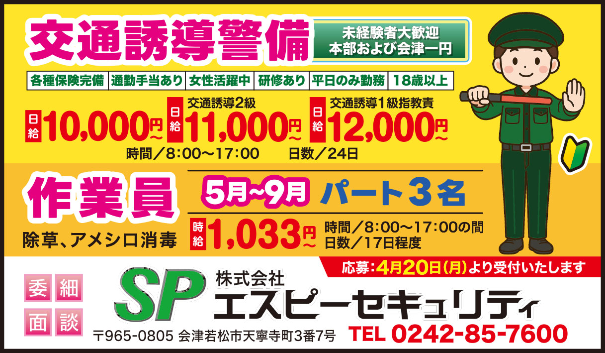 臨時警備/時給 1,300円以上 |