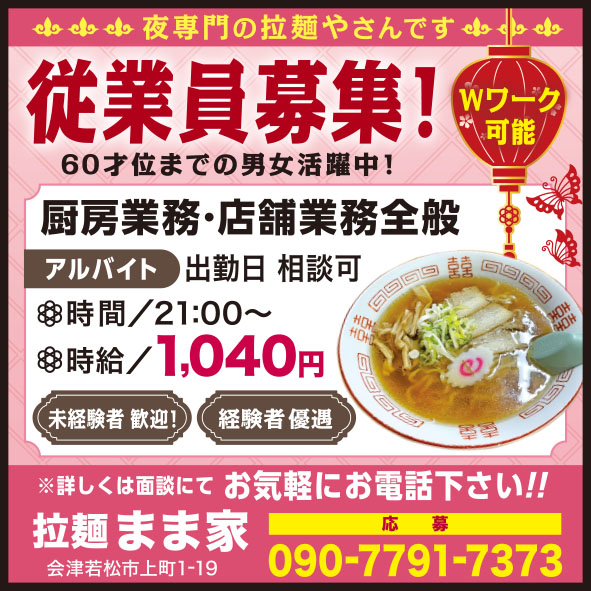 ①19:00~24:00 週3~4日働ける方