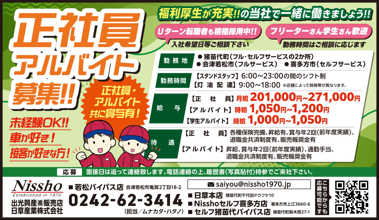 | 勤務地 | 会津若松市 喜多方市 猪苗代町 |