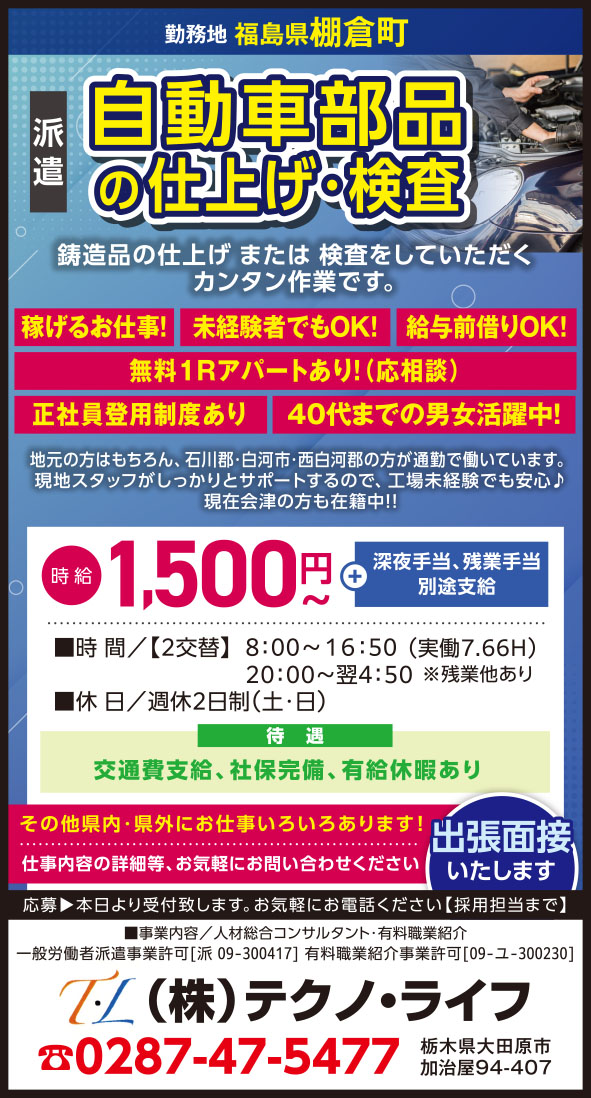 | 勤務地 | 会津若松市 喜多方市 会津坂下町 下郷町 磐梯町 西会津町 |